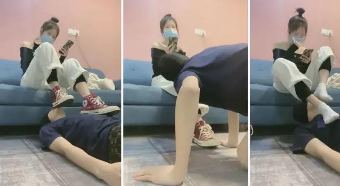 【00后A女主】跪舔美女主帆布鞋底闻臭脚棉袜裸足